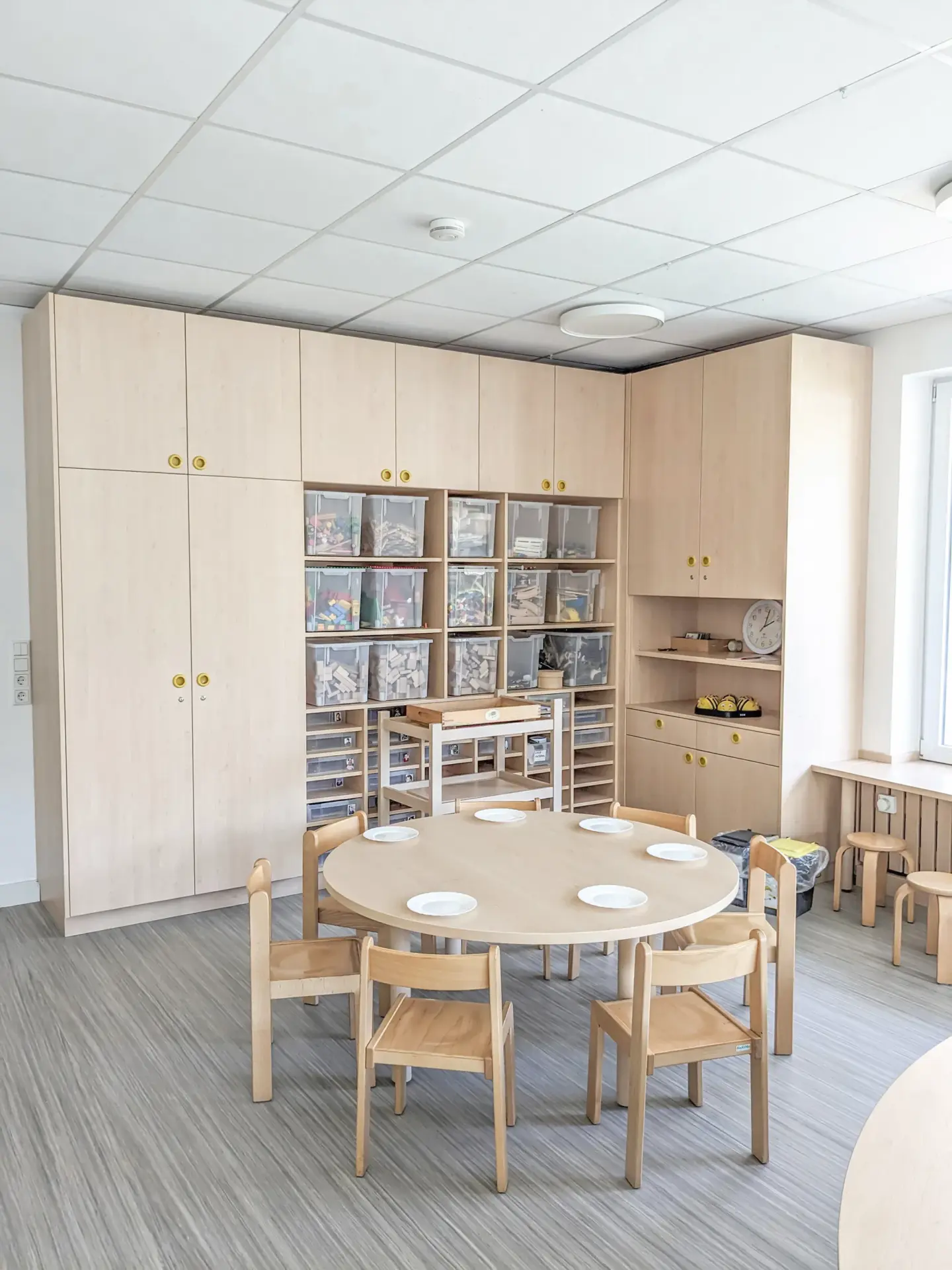Wir begleiteten die Kita-Leitung bei der Entwurfsfindung und standen während der gesamten Umbauzeit in stetigem, engem Austausch. Durch diese Kooperation konnte eine helle und moderne Inneneinrichtung realisiert werden, die optimal auf die Bedürfnisse der Kinder und der Mitarbeiter abgestimmt ist.