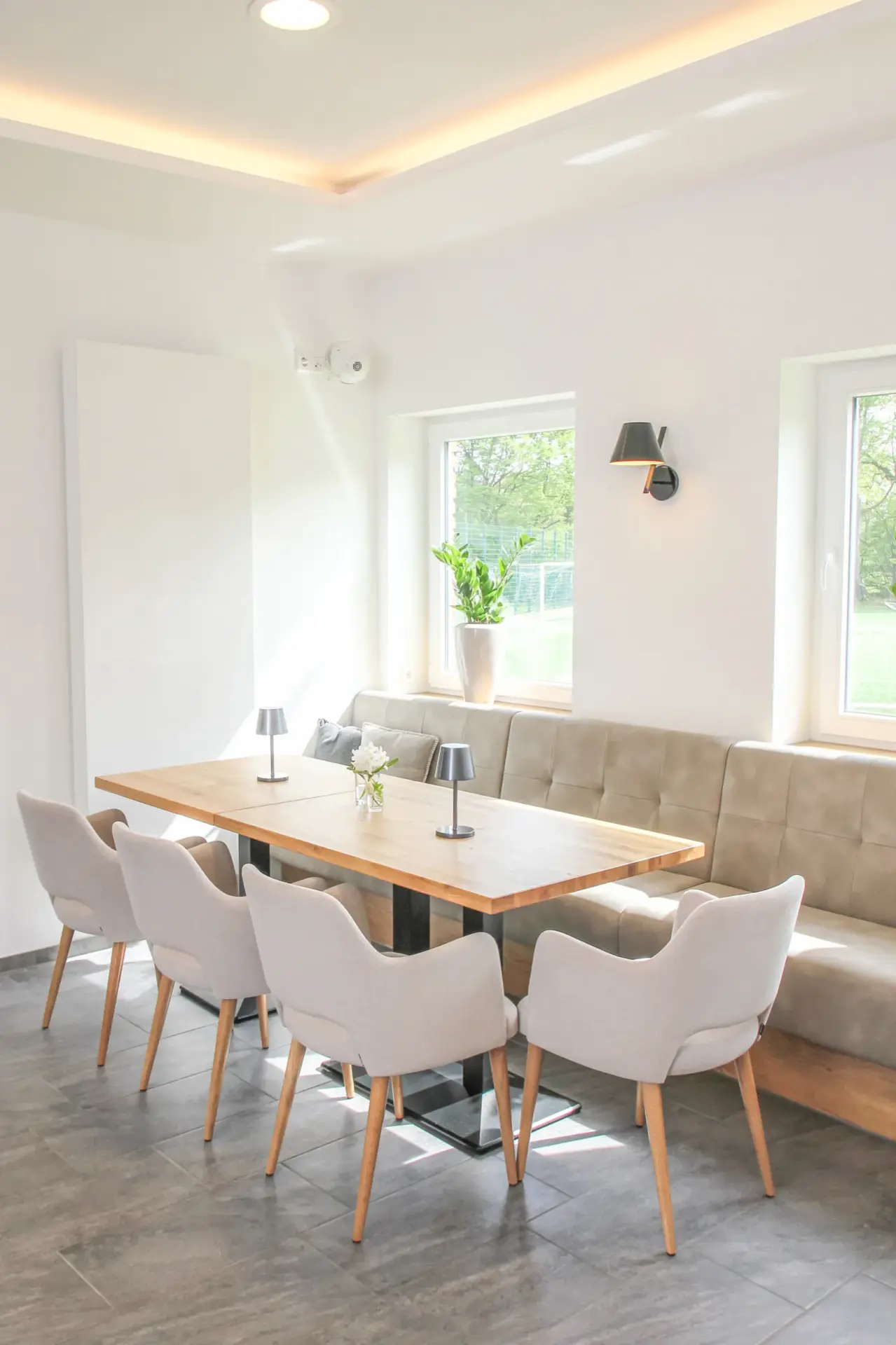 Entstanden ist eine helle und moderne Inneneinrichtung, die durch ihre wertigen Materialien und ihr einladendes Gesamtbild überzeugt. Der Vereinsvorstand zeigte sich mit der Qualität und der gesamten Ausführung der Arbeiten sehr zufrieden.